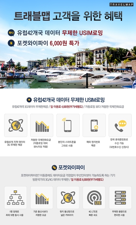 5월 연휴 시즌 가족이나 친구끼리 해외여행을 떠나는 관광객이 늘고 있다. 여행지에서 찍은 사진을 모바일 메신저나 SNS에 업로드 위해 호텔과 식당, 관광지 등에서 무료 와이파이 서비스를 이용한다. 그러나 이동 중 현지 관광지나 식당 정보를 바로 확인할 수 없어 데이터 사용이 필요 하지만, 데이터 무제한 서비스를 이용하기엔 부담이 되었던 게 사실.