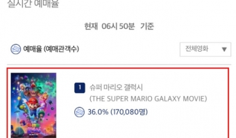 ▶ '슈퍼 마리오 갤럭시' 2일 연속 전체 예매율 1위 수성...