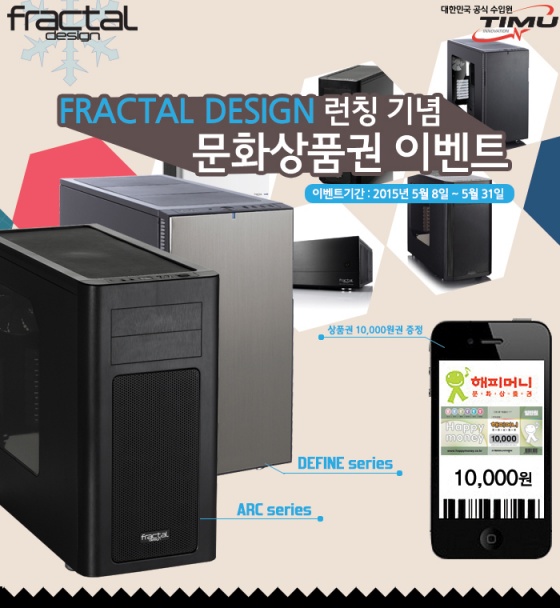 이노베이션티뮤(대표: 이광재)는 스웨덴 하이엔드 PC 브랜드인 프렉탈 디자인(FRACTAL DESIGN)의 런칭을 기념하기 위해 5월 8일부터 31일까지 문화상품권 증정 프로모션을 실시한다.