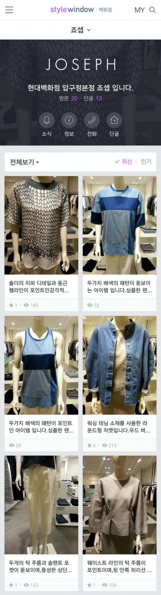 국내 최고의 명품 백화점인 현대백화점 압구정본점은 최근 샵윈도가 이끈 O2O 쇼핑 트렌드에 주목, 1985년 개점 이례 처음으로 온라인 판매를 시도한다. 네이버와 현대백화점 본점 측은 기존에 온라인 판매를 진행한 바 없던 '쿠플스' '솔리드옴므' 등과 같은 프리미엄 브랜드와 '죠셉' '파라점퍼스' 등과 같은 해외 브랜드 위주로 총 23개 매장의 상품 및 가격 정보를 '샵윈도'에 1차 제공했다. 향후 입점하는 브랜드는 지속적으로 확대될 예정이다.