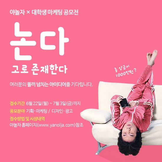 야놀자의 마케팅 총괄 정새봄 이사는 “20대를 타깃으로 효과적인 마케팅과 프로모션 아이디어를 얻고자 이번 공모전을 기획했다”라며, “대학생들의 놀이 문화를 바탕으로 한 기발하고 참신한 작품들이 많이 접수되기를 희망한다”라고 말했다.
