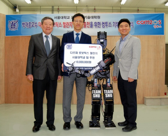 컴투스(대표 송병준, www.com2us.com)는 세계 재난 로봇 경진 대회 '다르파 로보틱스 챌린지(DARPA Robotics Challange, 이하 DRC)'에 참가하는 서울대학교 SNU팀을 후원하고자 발전 기금을 전달했다고 26일 밝혔다.