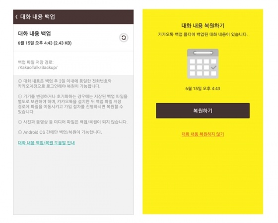 또 카카오톡은 그동안 많은 이용자들이 필요로 했던 '대화 내용 백업' 기능을 신설, 미리 대화 내용을 백업했을 경우 카카오톡을 삭제하고 재설치해도 텍스트 메시지 내용이 복원될 수 있도록 했다.