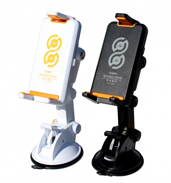아임커머스가 출시하는 '코비 HTP-7000' 차량용 무선충전 거치대는 일반 스마트폰부터 아이패드 에어2 같은 태블릿PC까지 장착 가능한 거치대다. 이 제품은 포크레인을 연상케 하는 디자인 때문에 '포크레인 거치대'로 불리며, 무선충전 기능까지 더해 차량에서 보다 안전하고 깔끔하게 사용할 수 있다.
