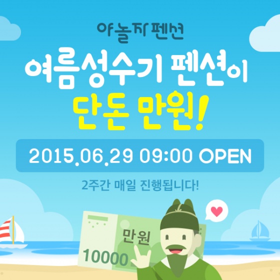 야놀자펜션이 본격적인 여름 휴가철을 맞아, 전국 인기 펜션의 객실을 만원에 제공하는 '만원의 행복' 이벤트를 실시한다고 29일 밝혔다.