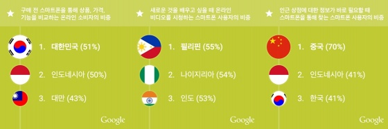 이번에 공개된 데이터에 따르면 전 세계에서 스마트폰 보급률이 가장 높은 10개 국가 중 5개, 스마트폰 보급률이 PC 보급률을 앞선 21개 국가 중 11개가 아태지역 국가인 것으로 나타났다. 또한 아태지역 소비자들은 스마트폰 활용에도 적극적이어서 새로운 것을 배우거나, 발견하거나, 시청하거나, 검색하거나, 구매하고 싶을 때 반사적으로 가장 가까운 기기, 즉 스마트폰을 통해 그러한 욕구를 바로 충족시키는 '마이크로 모먼츠(Micro-moments)'를 살고 있는 것으로 드러났다.