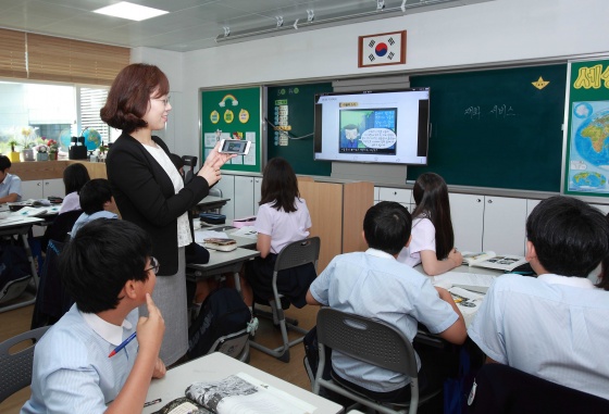 한양초등학교 교사들은 한양초등학교에서 구축한 e-포트폴리오에 접속해 과학, 사회, 수학 등 다양한 교과과목 자료를 다운받아 TV 화면에 띄워 수업을 진행하고 있다. 또한 일부 학급에서는 학생들의 숙제나 작품을 교사의 스마트폰으로 촬영해 TV화면으로 공유하면서 학급 학생들과 의견을 나누기도 한다.