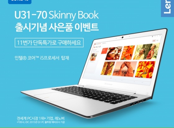 한국레노버(대표이사: 강용남, www.lenovo.com/kr)가 5세대 코어 i프로세서(브로드웰) 탑재로 더욱 강력해진 슬림 노트북 U31 및 U41 제품 출시를 기념해 11번가와 옥션에서 프로모션을 진행한다고 밝혔다.