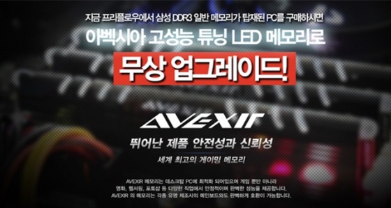 이번 이벤트는 PC 조립 전문 업체 컴스클럽, 프리플로우, 폴라리스컴에서 삼성전자 DDR3 메모리가 탑재된 PC를 구입할 경우, 아벡시아 DDR3 PC3-12800 CL11 Core Series 화이트, 레드 메모리로 무상 교환해주는 행사이다.