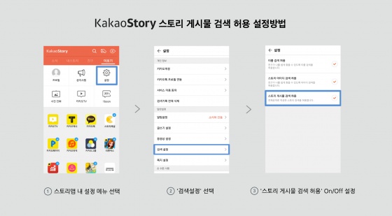 다음카카오는 이용자의 프라이버시 보호를 위해 다양한 검색 설정도 제공한다. 카카오스토리 더보기 > 설정 > 검색설정 에서 기존 '이름 검색 허용' 및 '스토리 아이디 검색 허용'과 더불어 '스토리 게시물 검색 허용' 여부를 설정할 수 있다. 카카오스토리 검색, 나아가 카카오검색에 본인의 카카오스토리 게시물이 검색되지 않고자 하는 이용자는 검색 허용을 모두 해지하면 된다. 이 외에도 기존 '친구공개' 혹은 '나만보기'로 설정해놓은 스토리 콘텐츠는 검색되지 않는다.