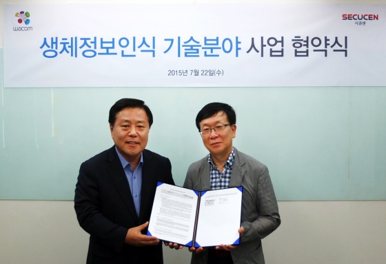 한국와콤(대표 서석건, www.wacom.com)과 생체인식 기술 전문기업 (주)시큐센(대표 김제호, www.secucen.com)이 생체인식 및 전자서명 기술 분야 공동 사업을 위한 업무협력을 체결 했다.