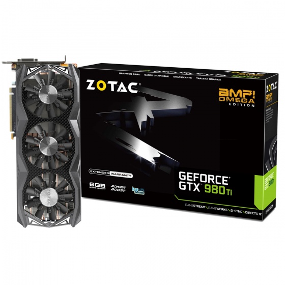 '조텍 지포스 GTX980Ti AMP! OMEGA'는 2,816개의 쿠다코어와 1,189MHz의 베이스 클럭, 1,279MHz의 부스트 클럭을 가졌으며, 384-bit의 GDDR5 6GB의 메모리는 7,020MHz의 메모리 클럭으로 동작한다. 3개의 DP포트와 각각 하나의 HDMI 2.0 포트와 듀얼 링크 DVI 포트를 통해 최대 4대의 모니터와의 멀티 디스플레이가 가능하다.