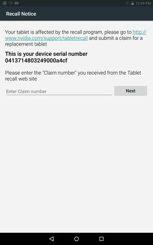이번 리콜은 쉴드 태블릿에 내장된 배터리 과열로 인한 위험성을 미연에 방지하기 위한 자체적 결정이다. 엔비디아는 소비자들에게 필요한 작업 및 데이터를 백업하는 일 외에는 리콜 대상 쉴드 태블릿 사용을 지양할 것을 권고했다.