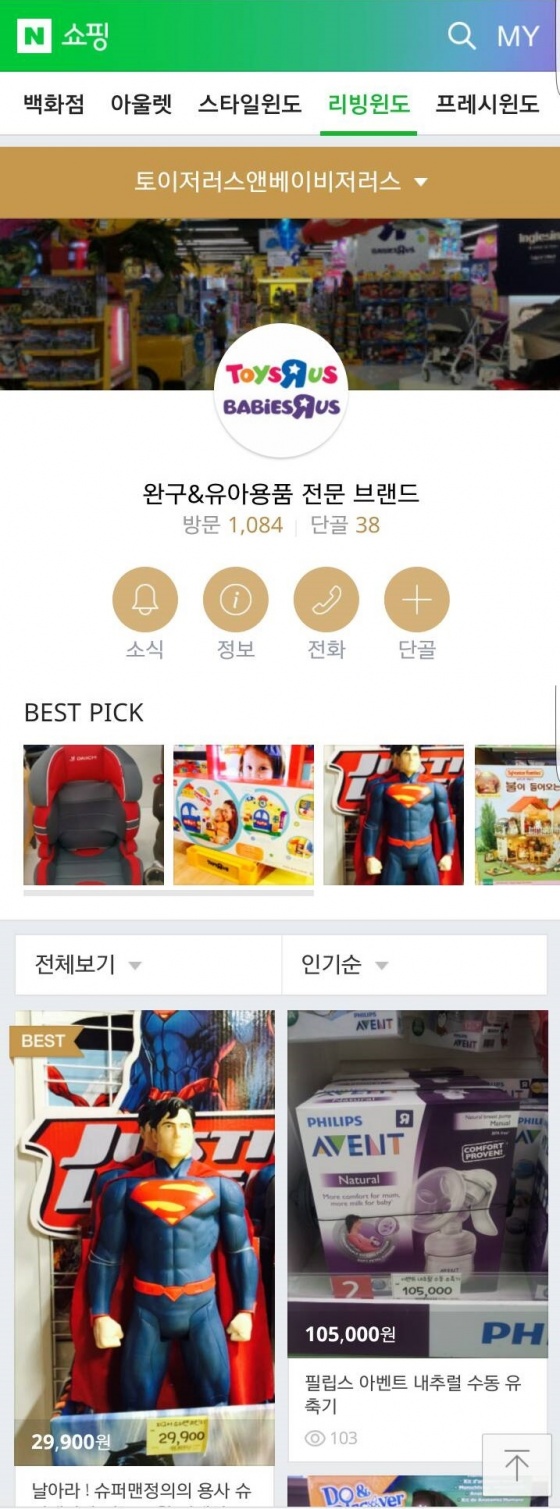 또한, 네이버 쇼핑 서비스 내 또 다른 전문관인 '리빙윈도'에는 롯데마트 광교점의 전세계적 유아완구 브랜드 '토이저러스(ToysRus)'를 비롯해 글로벌 영유아용품 전문점 '베이비저러스(BABIESRUS)' 국내 1호점도 입점했다. 리빙윈도 역시 일부 품목에 할인 혜택을 적용함으로써 이용자들은 시간과 장소의 제약없이 글로벌 영유아용품 브랜드의 다양한 상품들을 합리적인 가격으로 구매할 수 있다.