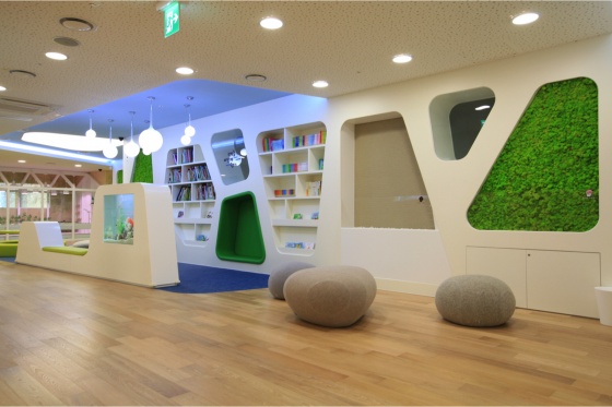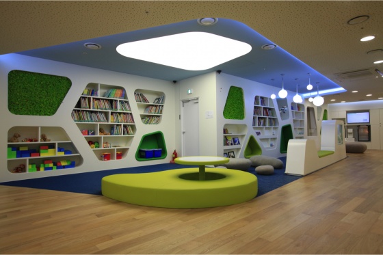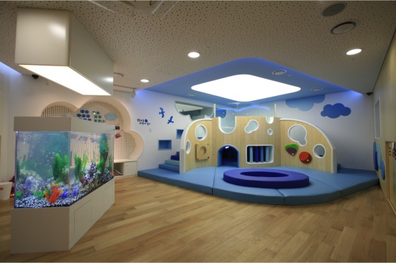 뿐만 아니라 임직원 자녀들에게 최적의 보육환경을 제공할 수 있도록 보육실 및 모든 공간에 친환경 자재를 사용했으며, 쾌적한 실내공기 유지를 위해 산소발생기, 공기정화시스템을 설치하고 벽천을 이용해 자연가습효과를 얻을 수 있도록 했다. 또한 아이들이 놀이를 통해 자연스럽게 필요한 신체 활동을 할 수 있도록 커다란 통나무 놀이터에 옥탑방이 있고 그 아래에는 편백나무칩 놀이를 할 수 있는 놀이방을 만들어 실내에서도 마음껏 뛰놀 수 있는 50평 규모의 실내 놀이터를 조성했다.