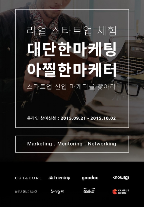 굿닥, 아만다, 야놀자, 프렌트립, 컷앤컬 등 스타트업 5개 사가 신입 마케터 발굴 프로그램인 '리얼 스타트업 체험: 대단한 마케팅, 아찔한 마케터(이하 리얼 스타트업)' 1기를 진행한다고 22일 밝혔다.