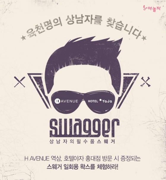야놀자(대표 이수진, www.yanolja.com)가 남성 전용 뷰티 브랜드 '스웨거'(Swagger)와 함께 고급 왁스 샘플 6000점을 제공하는 '6천 명의 상남자를 찾습니다' 이벤트를 실시한다고 23일 밝혔다.