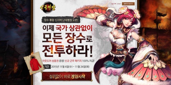 이 외에도 신규 서버에서 캐릭터를 생성하면 식량, 자원, 장수 등 다양한 패키지 아이템이 들어 있는 '신규 군주 지원상자'를 100% 지급한다.