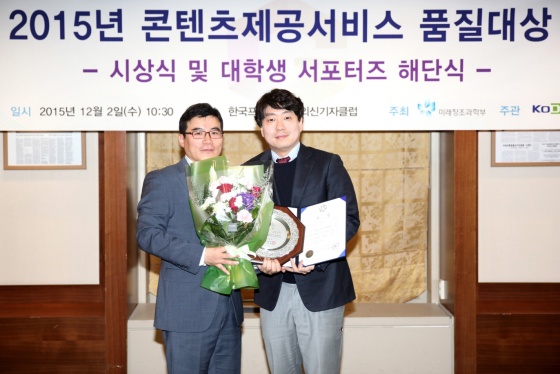 '콘텐츠제공서비스 품질대상'은 미래창조과학부가 디지털콘텐츠 산업 발전에 기여한 우수 기업을 선정, 시상하는 제도다. 벅스는 2일 서울 프레스센터에서 진행된 시상식에서 모바일서비스 부문 대상인 장관상을 수상했다. 서비스의 안정성, 기능성, 이용자 편의성 등을 종합 평가한 결과다.