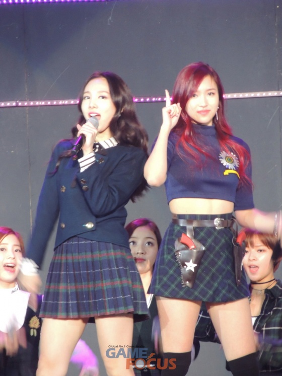 넥슨의 인기 액션 MORPG '던전앤파이터(이하 던파)'의 최대 규모 유저 행사 '던파 페스티벌 2015 [신]'이 금일(6일) 서울 고려대학교 화정체육관에서 화려하게 개최한 가운데 걸그룹 '트와이스'가 화려한 무대를 선보였다. 트와이스는 대표 곡 'OOH-AHH하게'를 비롯해 3곡을 부르며 행사장을 뜨겁게 달궜다.