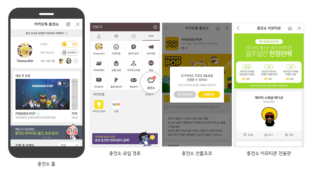 '카카오톡 충전소'는 이용자와 작가, 기업 모두가 윈-윈할 수 있는 새로운 가치를 제공한다. 이용자는 지급된 초코를 모아 좋아하는 이모티콘을 무료 또는 할인된 가격에 구매할 수 있으며, 작가는 더 많은 수익 창출의 기회를 갖게 된다. 기업이나 브랜드는 수 많은 카카오톡 이용자들을 대상으로 다양한 형태의 이벤트를 진행할 수 있게 된다.