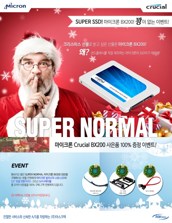 아스크텍(www.ask-tech.com)은 크리스마스와 연말을 기념하여 마이크론 'Crucial SSD BX200' 특별 이벤트를 진행한다고 밝혔다.