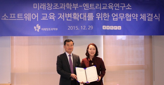 엔트리교육연구소(대표 김지현)와 미래창조과학부(장관 최양희)는 소프트웨어 교육 활성화를 위한 업무협약을 체결했다고 29일 밝혔다.