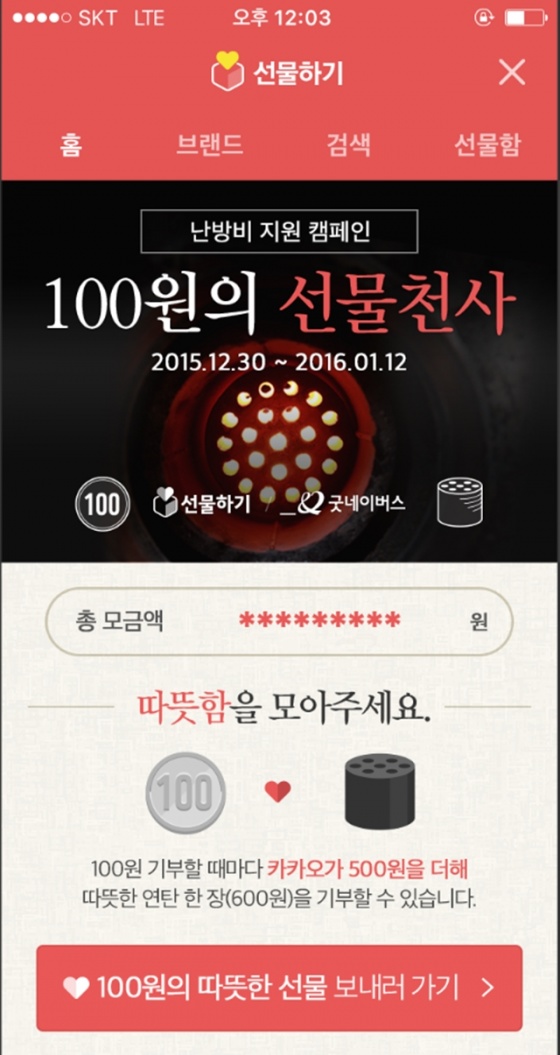카카오톡 선물하기가 유저들과 함께 어려운 이웃들에게 따뜻한 겨울을 선물한다.