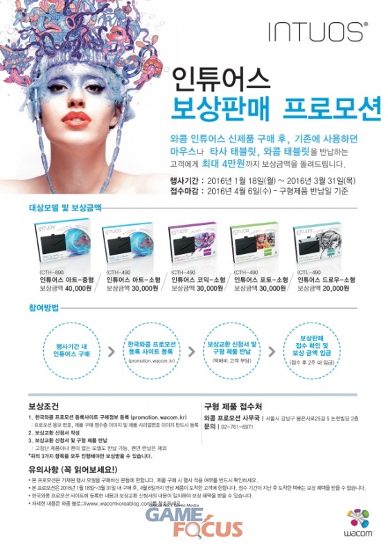 한편, 행사에 대한 보다 자세한 내용은 와콤 블로그( www.wacomkoreablog.com ) 를 통해 확인 가능하며, 보상판매 프로모션 문의사항은 와콤 프로모션 사무국(02-761-6971)에 문의하면 된다.