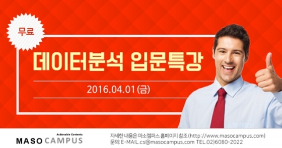 체계적인 데이터분석의 밑그림을 이해하고자 하는 직장인에게 좋은 기회가 될 이번 무료특강에 대한 자세한 내용은 마소캠퍼스 공식 홈페이지(http://www.itmagnet.co.kr/course/msc21/) 및 고객센터(02-6080-2022)로 문의하면 된다.
