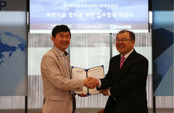 경기창조경제혁신센터(센터장 임덕래)는14일 특허권 자본화 업무 협력을 위하여 (주)중앙경영연구소와, 보안기술 협력을 위하여 (주)네오와인과 MOU를 체결하였다.