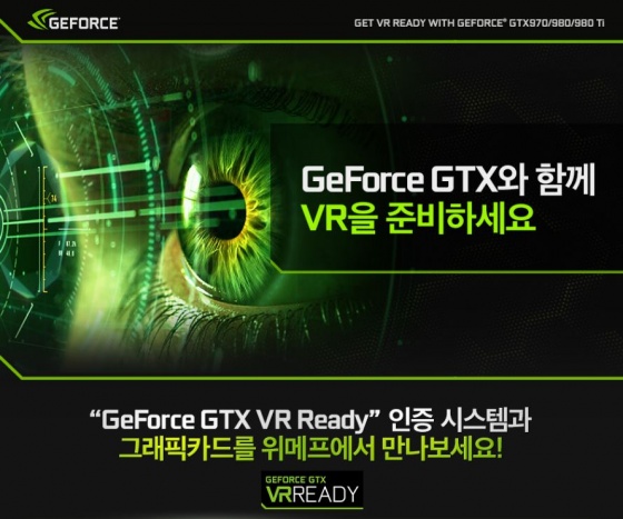 이번 기획전에서 선보이는 'GeForce GTX VR Ready' 시스템은 탁월한 VR 경험을 위해 구성된 GeForce GTX 980 GPU 이상, 혹은 최신 인텔 Core i7 또는 i5 이상의 CPU와 지포스 GTX 970 이상의 'GPU' 그리고 8GB 이상의 메모리를 적용하여 구성한 데스크톱을 뜻한다.