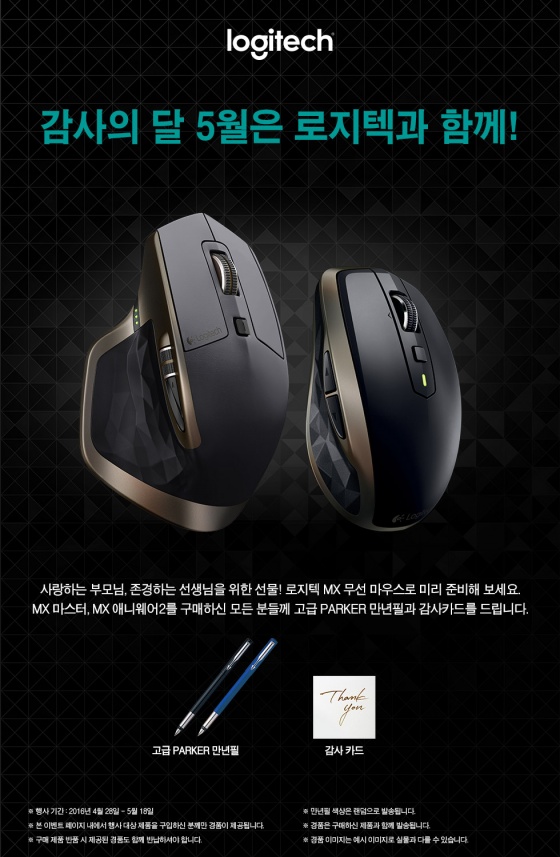 로지텍 코리아(지사장 정철교)는 감사의 달 5월을 맞아 로지텍 MX 무선 마우스 2종 구매 고객 전원에게 사은품을 증정하는 ‘감사의 달 5월은 로지텍과 함께!’ 프로모션을 진행한다고 밝혔다.