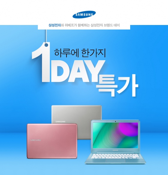 이번 주 판매 제품들을 살펴보면 ▲25일, 13.3형 화면 / 인텔 i3-5005U CPU / 8GB 메모리 / SSD 128GB / HDD 500GB와 840g의 가벼운 무게로 편리한 휴대성을 자랑하는 삼성전자의 '노트북9(METAL NT900X3L-K58WS)'모델을 135만9000원에 판매를 시작으로 ▲26일, 15.6형 화면 / 인텔 i3-5005U CPU / 8GB 메모리 / SSD 128GB를 탑재한 '삼성전자 노트북5(NT500R5H-L39S)'모델을 79만9000원 ▲27일, 15.6형 화면크기 / 인텔 i7-5500U CPU / 8GB 메모리 / SSD 128GB를 탑재한 '삼성전자 노트북5(NT500R5S-YD7S)'모델을 95만9000원에 한정수량 판매한다.