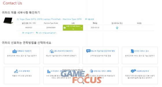 온라인 서비스에 대한 자세한 내용은 레노버 공식 홈페이지 상단에서 '고객지원'-'기술지원담당자'를 선택하거나, (http://support.lenovo.com/kr/ko/contactus) 페이지에서 확인할 수 있다. 제품의 일련번호를 입력하면, 무상보증기간 확인과 함께 기술 지원 담당자와의 채팅, 이메일 상담, 콜백, 수리 진행 상황 확인 등 다양한 서비스 방식을 선택할 수 있다.