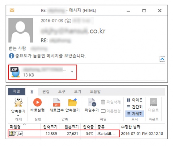 새롭게 발견된 'Cerber' 랜섬웨어 변종은 국내 기업 이용자를 대상으로 JS 스크립트 파일을 첨부해 퍼져나간 Locky(락키) 랜섬웨어와 유사한 방식으로 전파되고 있으며, JS 파일 외에도 JSE 파일을 첨부한 새로운 형태로도 유포되고 있다.