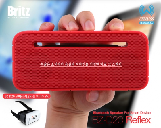 브리츠는 마음까지 풍성해지는 한가위를 맞아 브리츠 인기 블루투스 스피커인 'BZ-D20 Relfex[리플렉스]'를 구매하는 소비자에게 브리츠 VR을 증정하며 이 기간동안 가격할인 혜택도 동시에 제공한다.