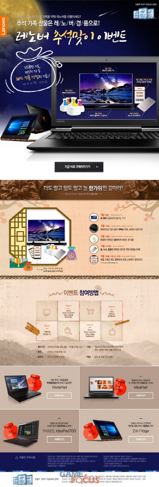 한국레노버(대표이사 강용남)가 오는 9월 30일까지 공식 온라인스토어에서 추석 맞이 이벤트를 실시한다.