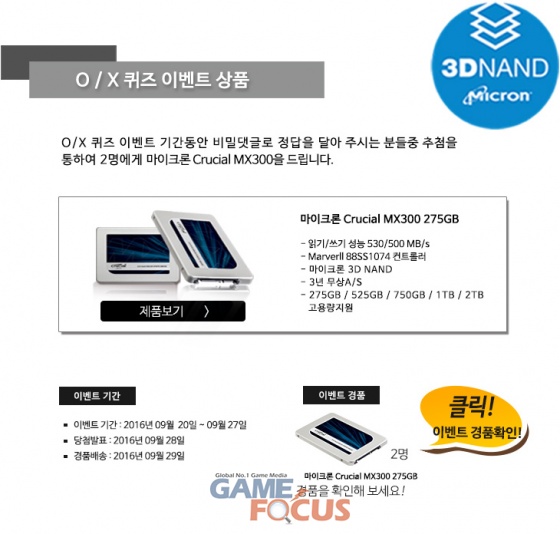 (주)아스크텍은 '마이크론 Crucial MX300' 275GB, 525GB, 750GB, 1TB 출시 이후 2TB 제품을 추가로 출시했다. 한편 (주)아스크텍은 마이크론 Crucial MX300 2TB 출시 기념으로 O/X퀴즈 이벤트를 27일까지 진행한다.