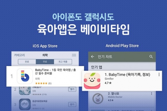 육아 기록 어플리케이션(이하 앱) '베이비타임'이 출시 7일만에 iOS 의학 카테고리 1위를 차지했다. 수유 어플 최초로 50만 누적 다운로드를 기록한 베이비타임이 안드로이드와 iOS 통합 1위 육아앱으로 거듭난 것.