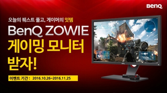 이번 행사의 경품으로 사용되는 BenQ ZOWIE XL2411은 24인치 풀 HD 해상도에 144Hz의 높은 주사율과 1ms의 빠른 응답속도로 게임에서의 부드러운 움직임과 정밀한 컨트롤을 돕는 게이밍 전문 모니터로, FPS1, FPS2 모드 등 다양한 게임 모드 지원과 어두운 곳을 밝게 보여주는 블랙이퀄라이저 기능으로 오버워치, 서든어택 등의 1인칭 슈팅게임에 특히 뛰어난 성능을 보여준다.