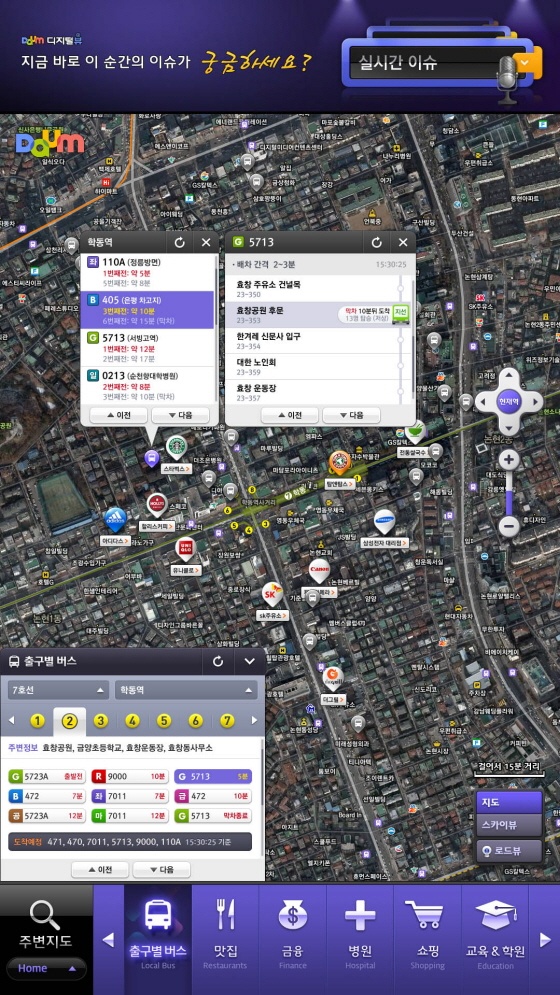다음커뮤니케이션이 포털 최초로 다음 지도를 통해 실시간 버스정보를 제공한데 이어 모바일과 디지털뷰에도 실시간 버스정보를 제공한다.