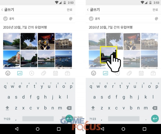 채팅방 안에 제공되는 톡게시판도 개선됐다. 기존에 첨부한 사진의 순서를 변경하고 싶을 경우 글을 지우고 다시 써야했으나, 앞으로는 첨부한 사진을 길게 눌러 자유롭게 순서를 변경할 수 있다. 게시글을 수정할 때도 본문뿐만 아니라 사진이나 동영상도 추가, 삭제할 수 있게 됐으며, 채팅방의 공지사항이 업데이트 될 경우 빨간 점을 표시해 중요한 내용을 놓치지 않을 수 있도록 알려준다. 투표 결과도 멤버별, 항목별로 구분해서 확인할 수 있어 편리하다.