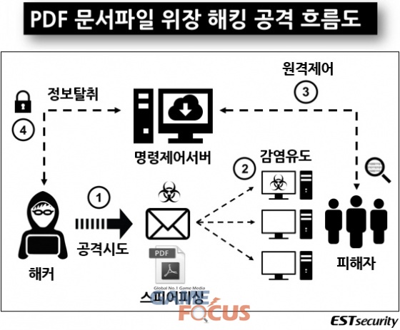 이번에 포착된 공격 역시 특정 공문서나 민감한 개인 신상정보를 담고 있는 PDF 문서 파일을 위장한 악성 파일이 첨부되어 있다.