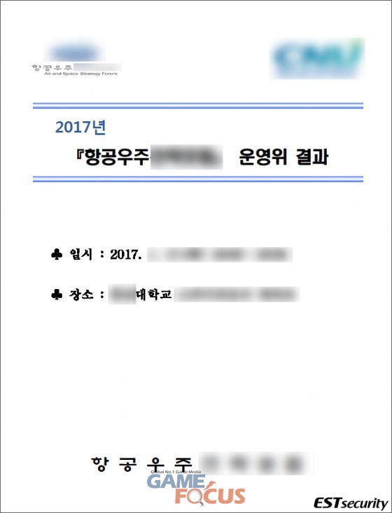 ‘항공우주전략 운영위’ 문서로 위장한 악성파일 실행 화면 (자료제공: 이스트시큐리티)