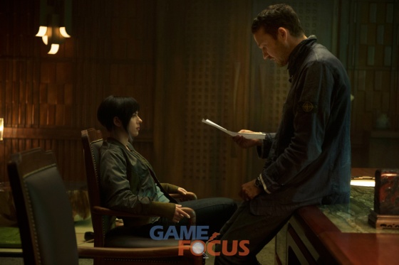 이번에 공개된 스틸을 통해 촬영 현장에 녹아든 스칼렛 요한슨의 모습을 확인할 수 있다. 먼저, 엘리트 특수부대 섹션9의 리더 '메이저'의 상징적 아이템인 광학 미체 수트를 입고 총을 겨누고 있는 스칼렛 요한슨은 강렬한 액션과 카리스마에 대한 기대를 높인다. 촬영에 앞서 캐릭터를 위해 1년 전부터 무기 사용법, 격투, 와이어 액션까지 트레이닝 받으며 각별한 노력을 기울인 스칼렛 요한슨은 강렬한 액션 연기를 예고한다.
