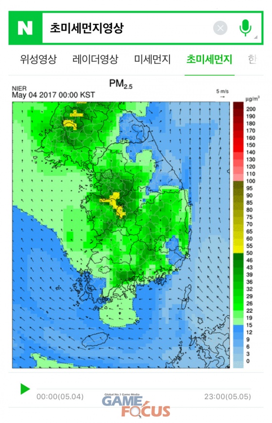 사용자가 모바일 네이버에서'미세먼지영상', '초미세먼지영상'을 검색하면 검색 결과 화면에서 한반도의 대기상태를 영상으로 확인할 수 있다. 데이터는 환경부 국립환경과학원이 제공하는 한반도 대기질 예측 모델을 통한 데이터를 활용한다. 네이버는 매일 오후 6시에 다음날 0시부터 3일 뒤 0시까지 48시간동안의 데이터를 업데이트한다.
