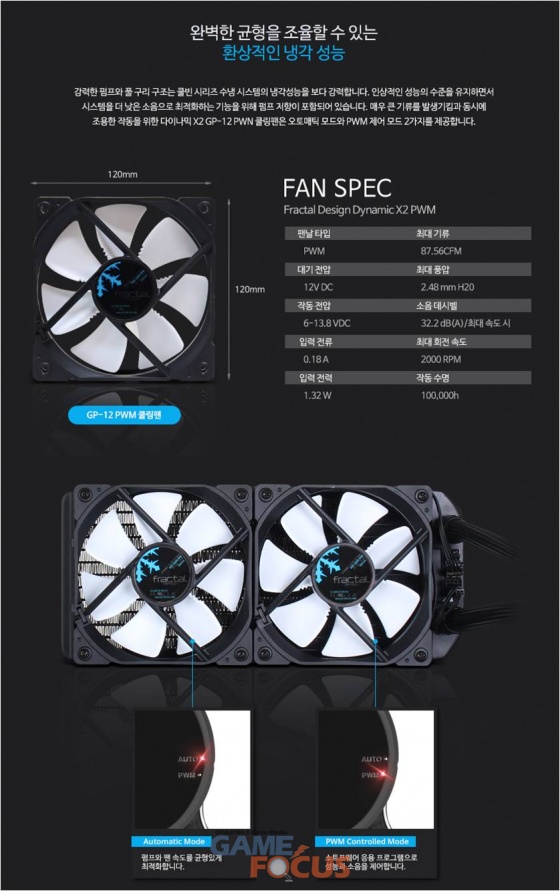 이번에 출시한 프렉탈디자인(Fractal design)사의 셀시우스(CELSIUS) S24, 셀시우스(CELSIUS) S36은 AMD RYZEN AM4 소켓을 기본 제공하고, 고성능 및 저소음의 다이나믹 X2 GP PWM 120mm 팬을 번들로 기본 제공하며 분당 500~2000RPM의 강력한 성능의 회전 수를 제공한다.