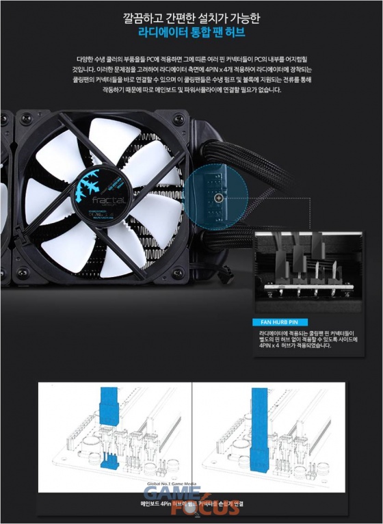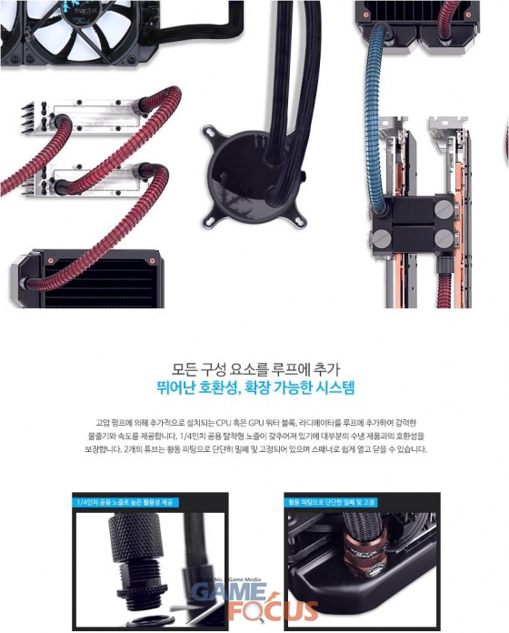 또한 자체적으로 라디에이터에 팬 허브를 제공, 팬 설치 시 일일이 핀을 마더보드에 꽂아줄 번거로움을 줄이고 깔끔한 설치를 가능하게 하며 뛰어난 확장 성으로 PC시스템에 효과적인 냉각 성능을 제공한다.