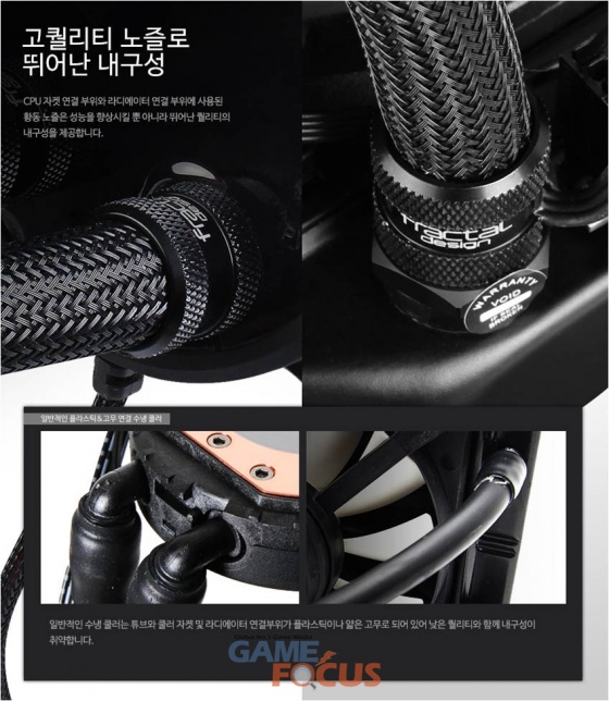 프렉탈디자인(Fractal design)사의 셀시우스(CELSIUS) S24, 셀시우스(CELSIUS) S36는 1/4인치 공용 탈 부착 워터노즐 적용으로 고압 펌프에 추가적으로 설치되는 CPU 혹은 GPU 워터블록, 라디에이터를 루프에 추가하여 강력한 물줄기와 속도를 제공하며, 대부분의 시중 수냉 제품과의 호환성을 보장한다.